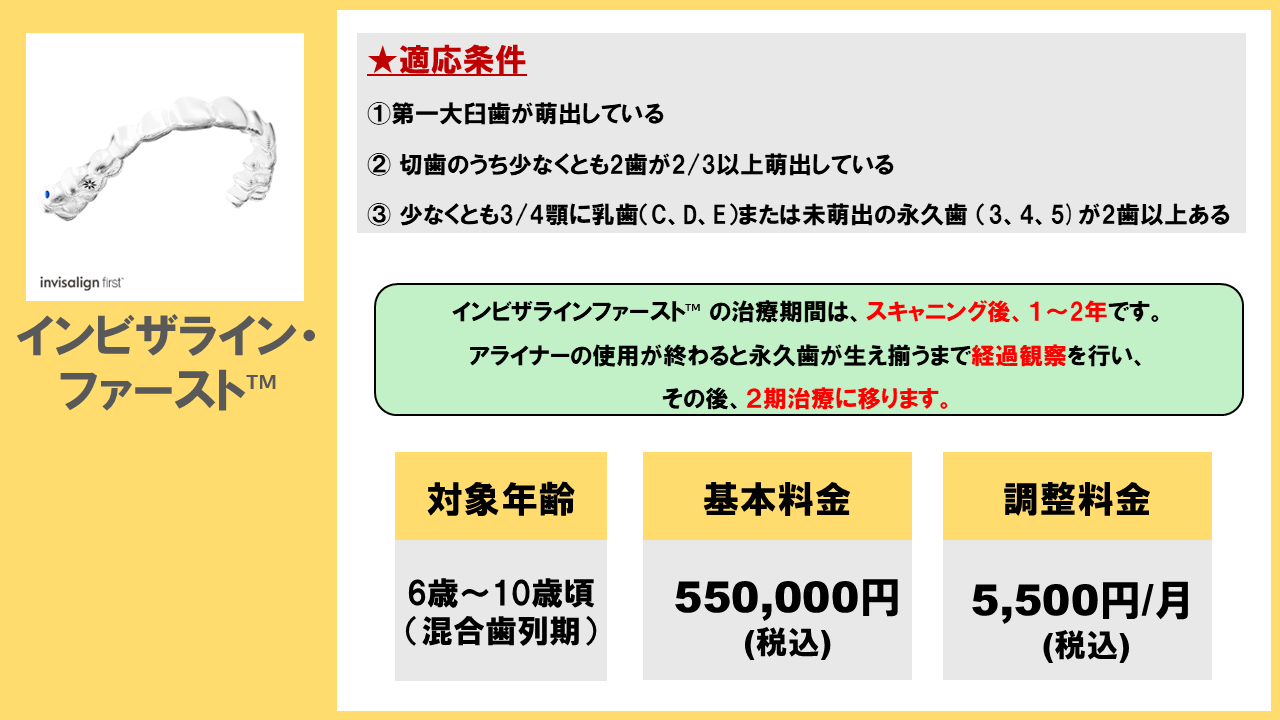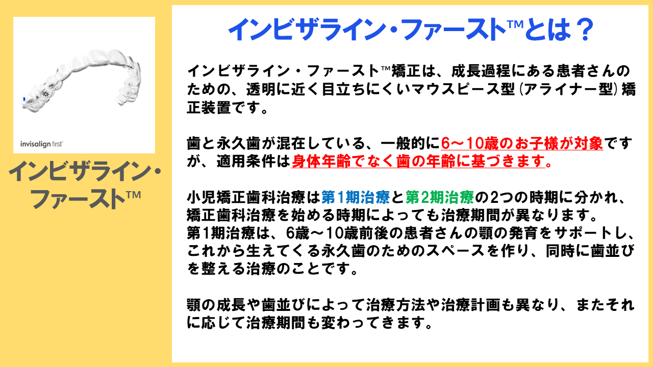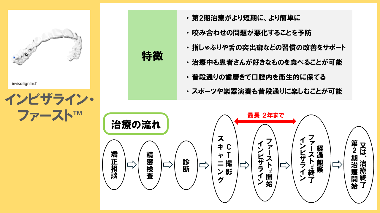 - マウスピース型(アライナー型)矯正装置(インビザラインファースト™)の治療の流れはこちら
