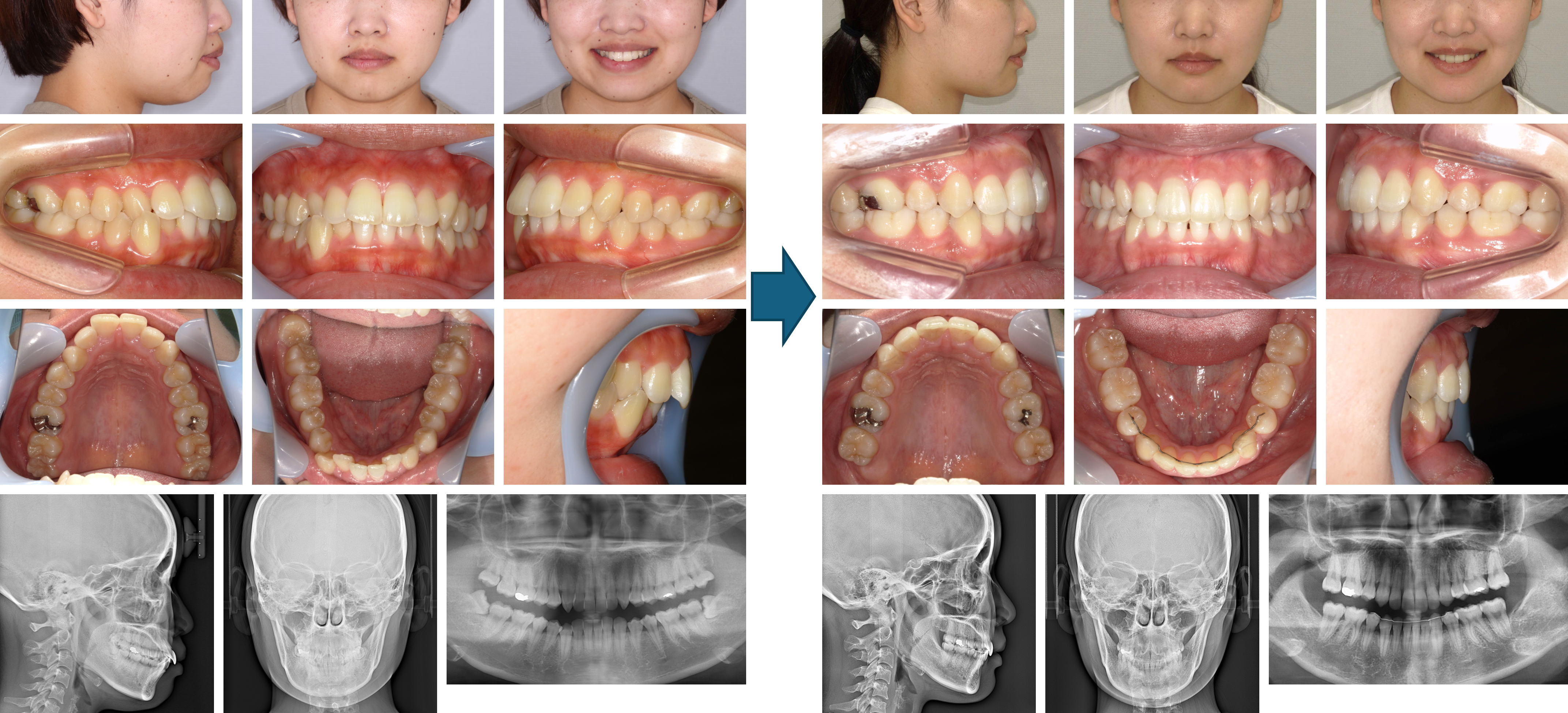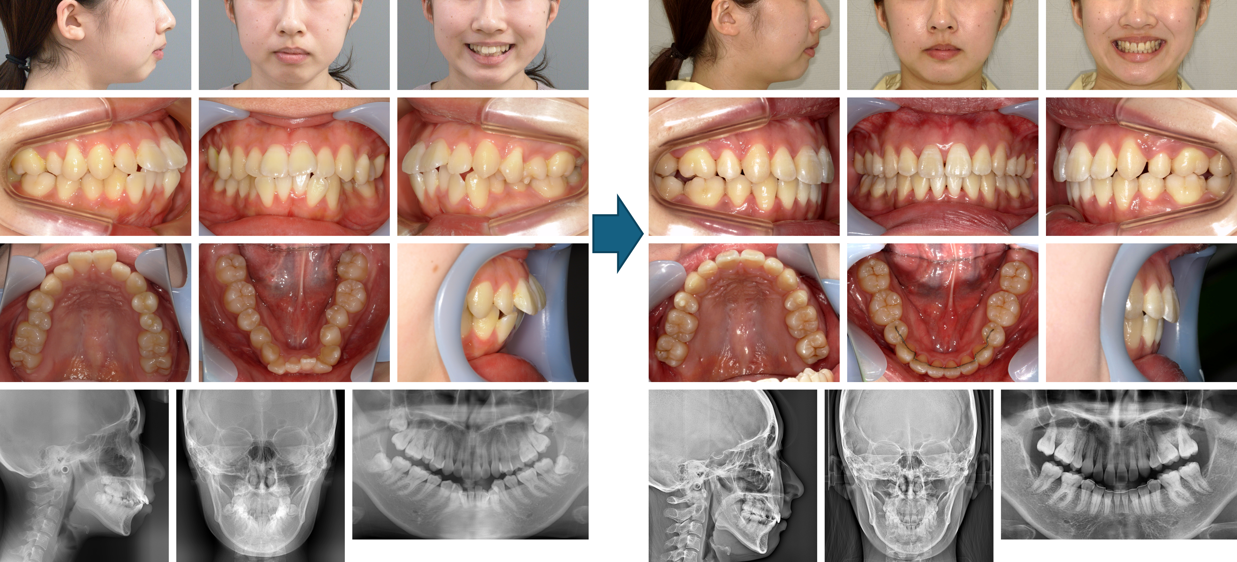 【治療例】初診時年齢:22歳4か月 / 性別:女性 / 主訴:前歯が出ている。もっと笑顔が作れるようになりたい。